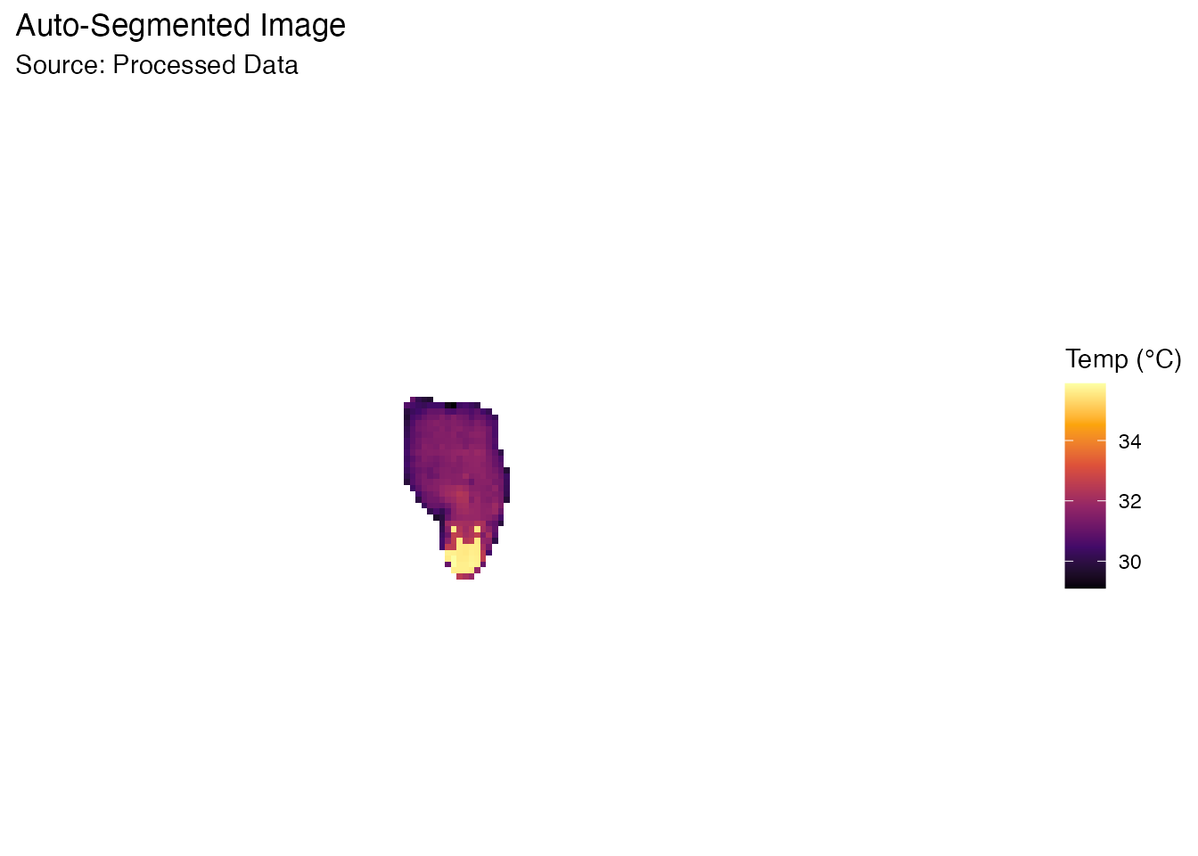 Instead of manually guessing a temperature threshold, BioThermR can automatically separate the subject from the background using Otsu’s method and morphological operations.